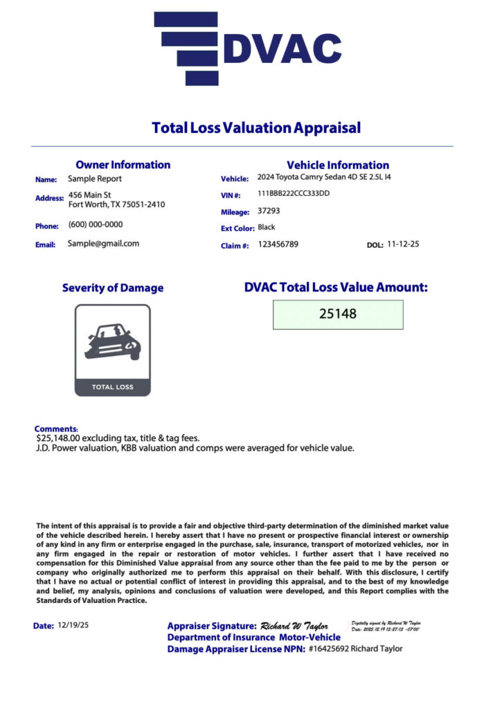 Total Loss Appraisal Report: